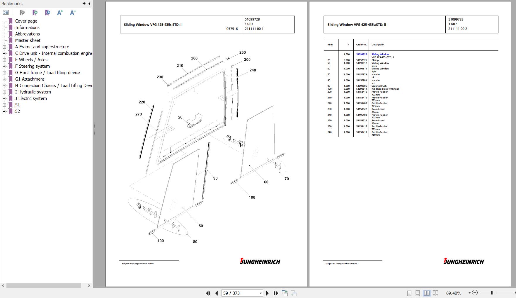 Jungheinrich DFG 430s G100-450ZT Spare Parts Manual FN427086