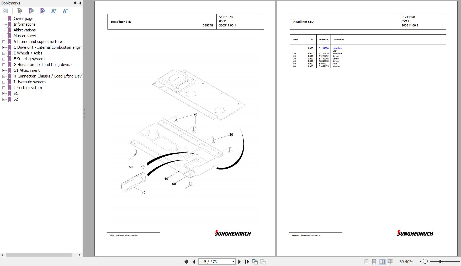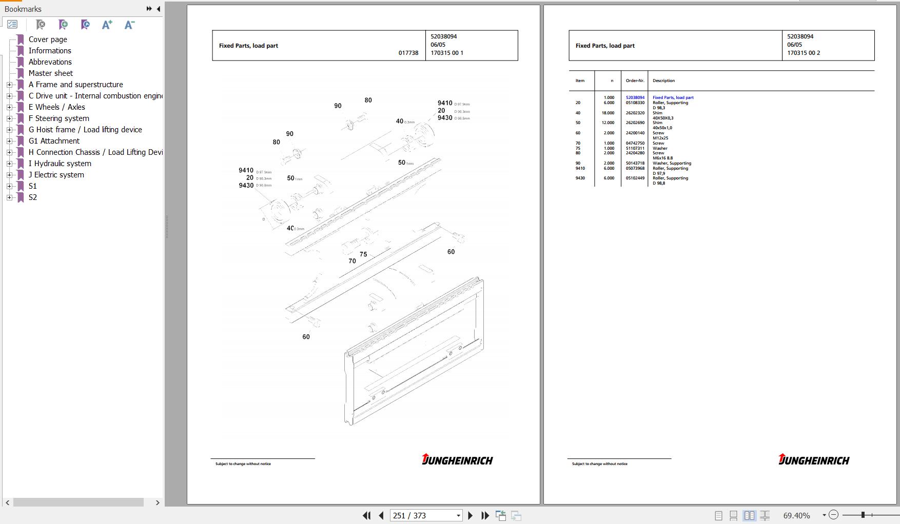 Jungheinrich DFG 430s G100-450ZT Spare Parts Manual FN427087