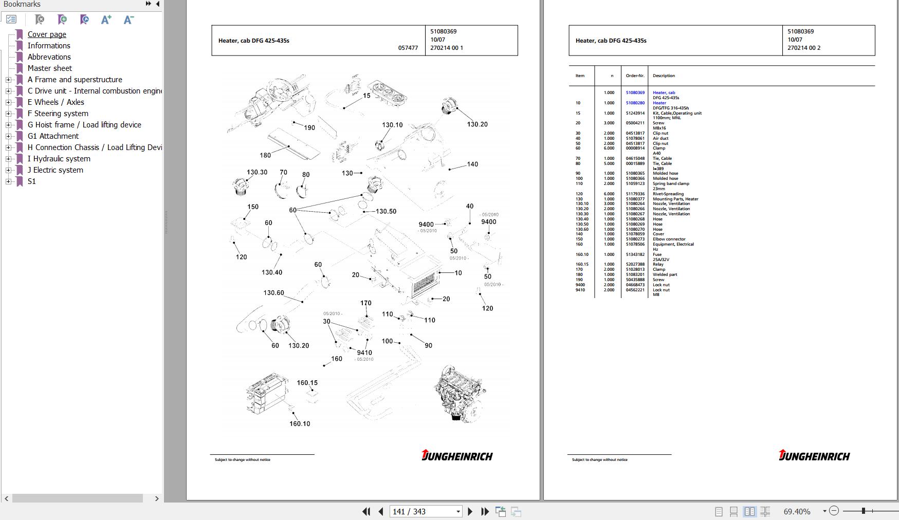 Jungheinrich DFG 430s G150-440DZ Spare Parts Manual FN426946