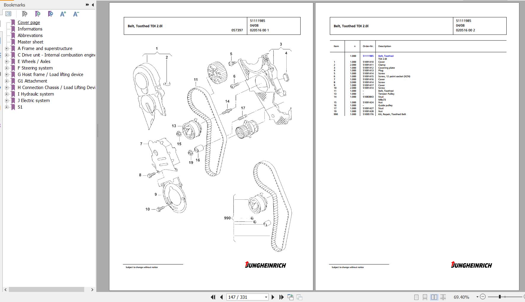 Jungheinrich DFG 430s GE100-440DZ Spare Parts Manual FN427062