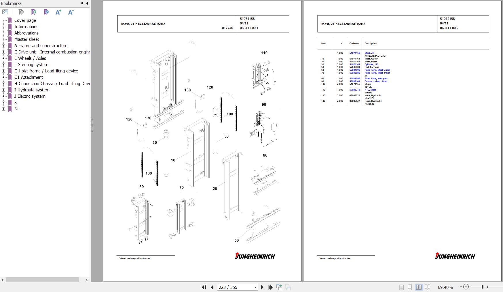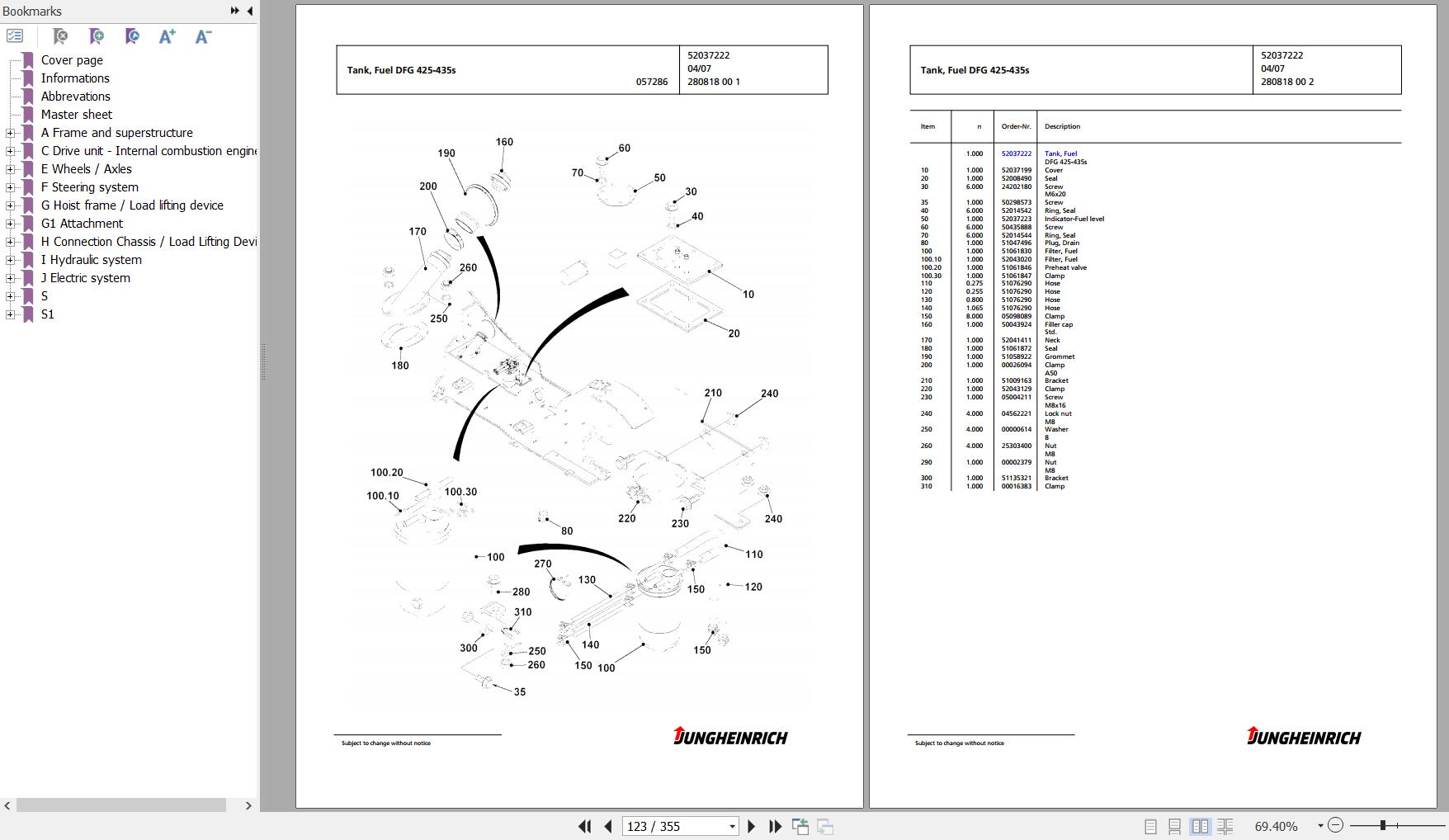 Jungheinrich DFG 435s G115-500ZT Spare Parts Manual FN427205
