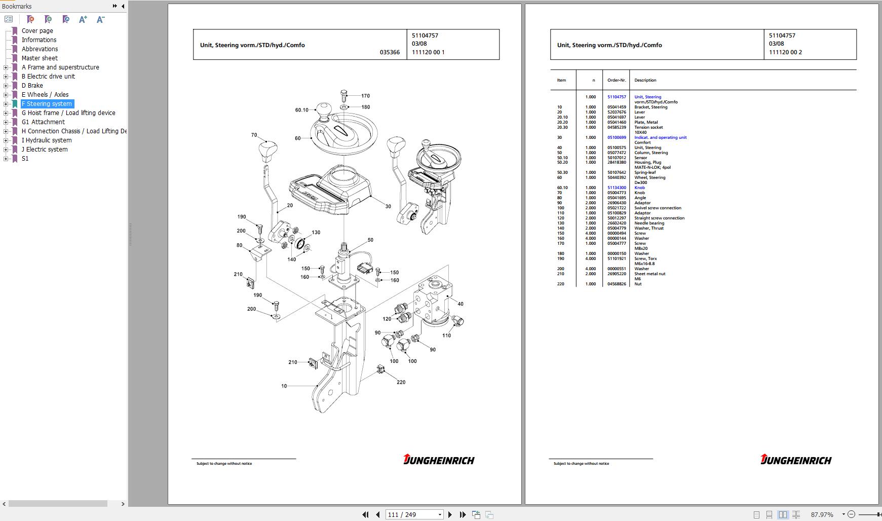 Jungheinrich EFG 113 SP GE80-435DZ Parts Catalog FN426423