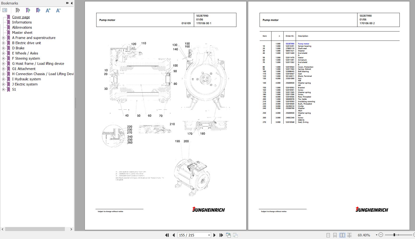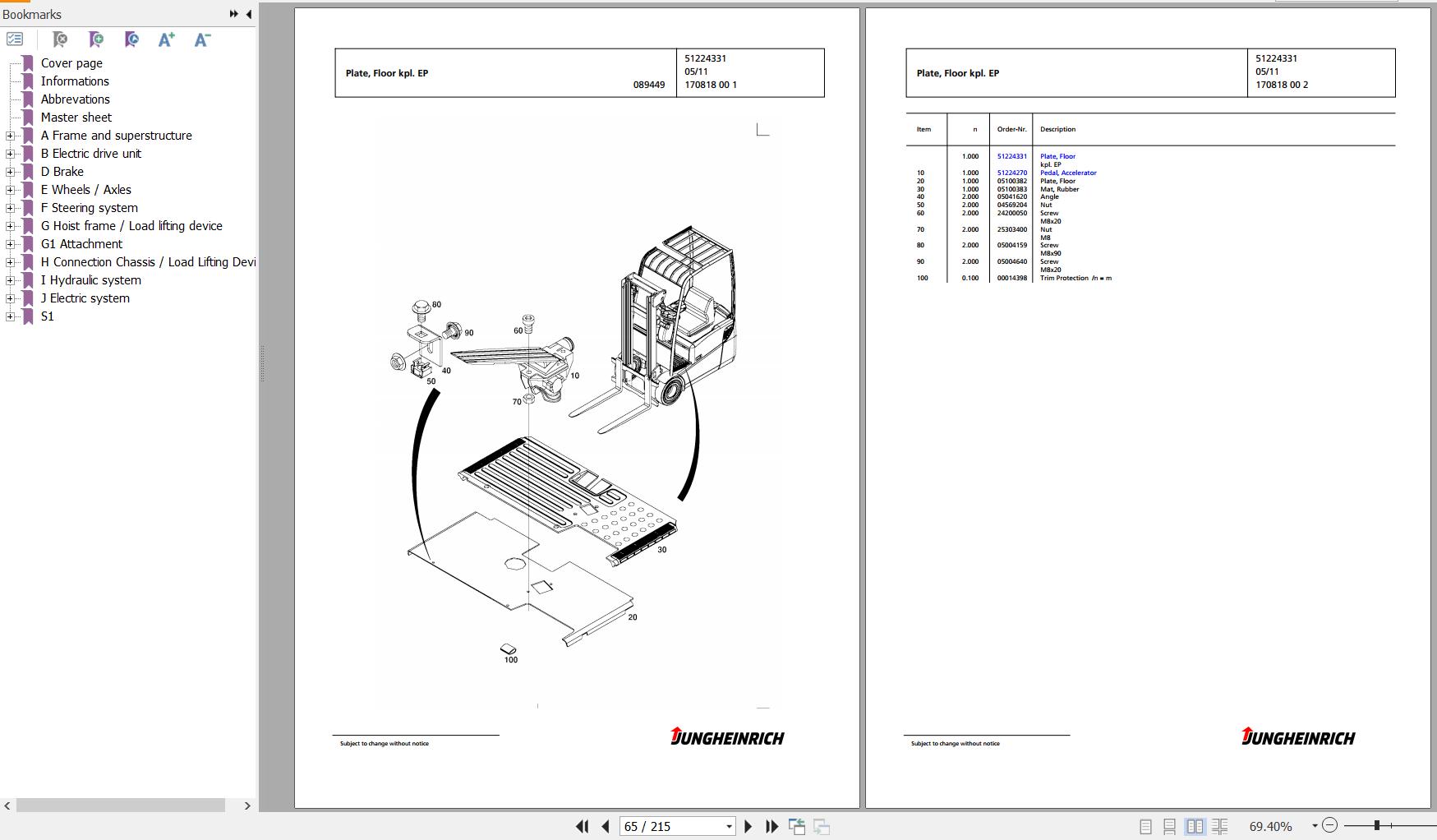 Jungheinrich EFG 115 SP G115-450ZT Spare Parts Manual FN427040