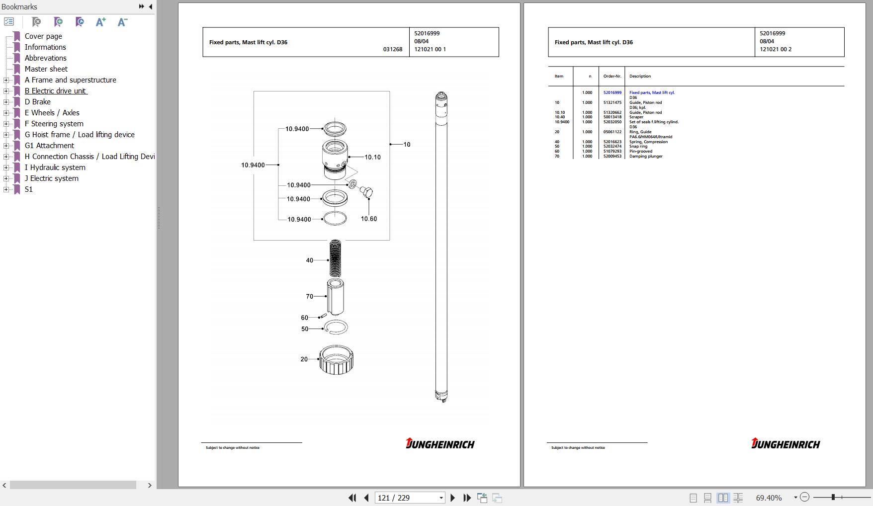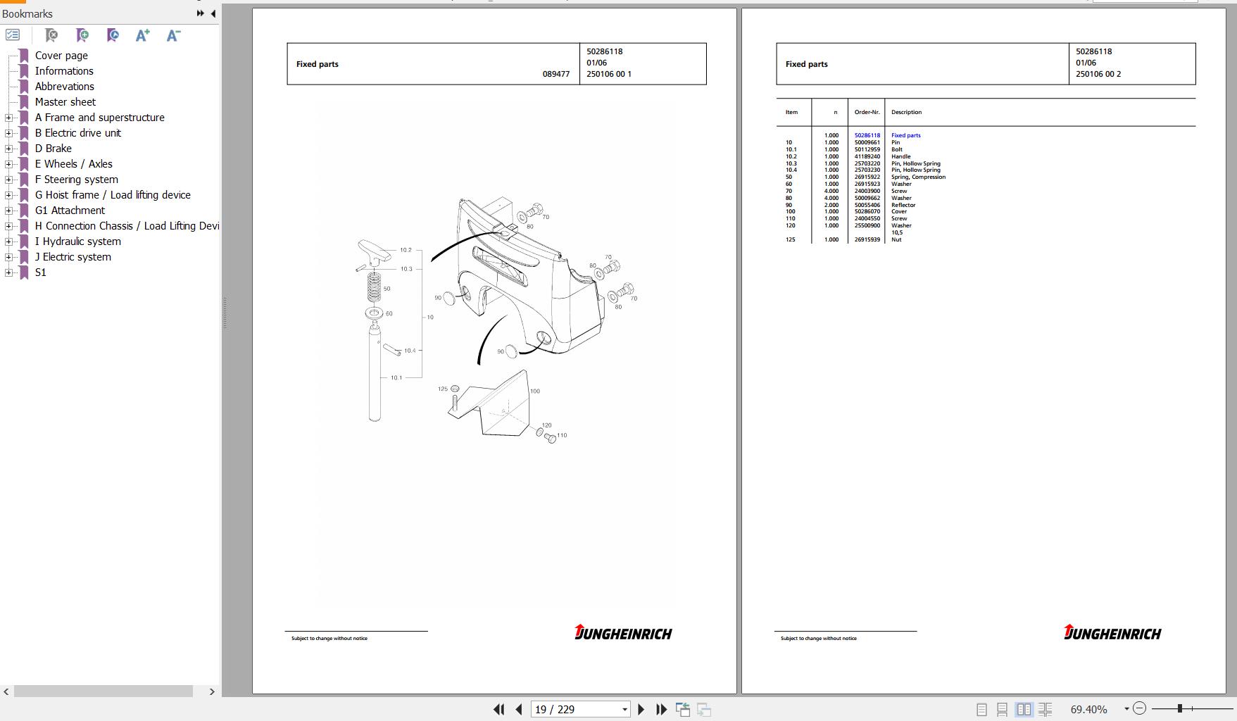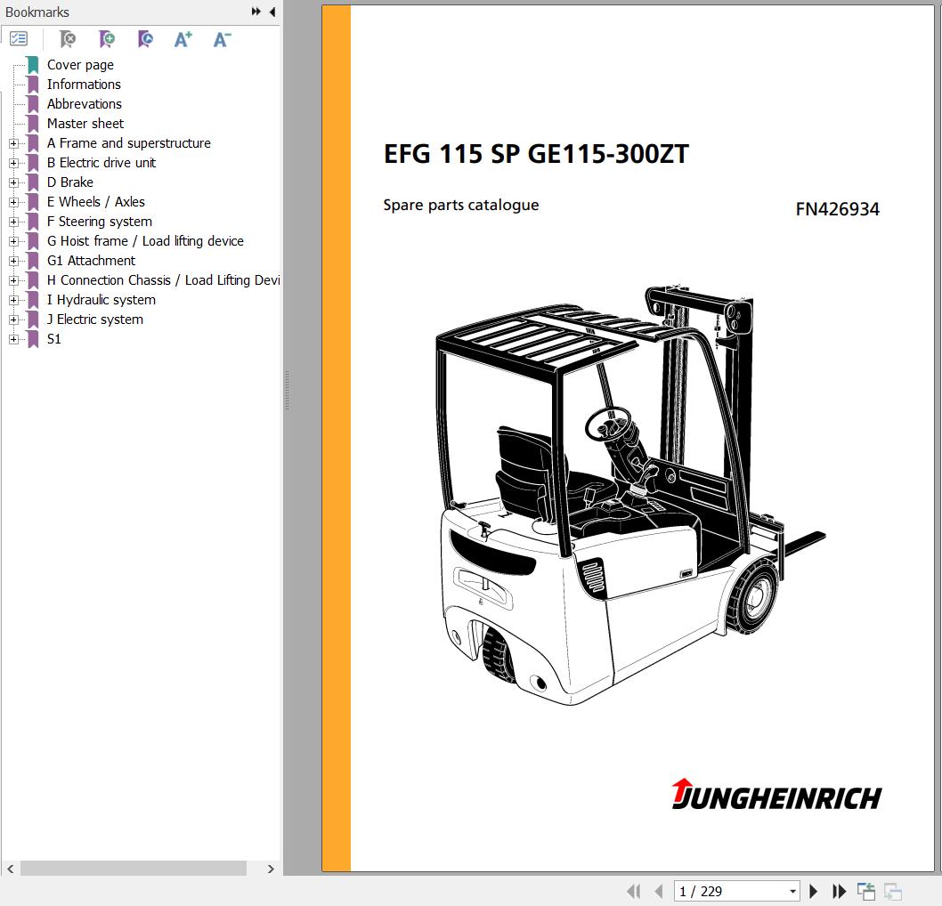 Jungheinrich EFG 115 SP GE115-300ZT Spare Parts Manual FN426934