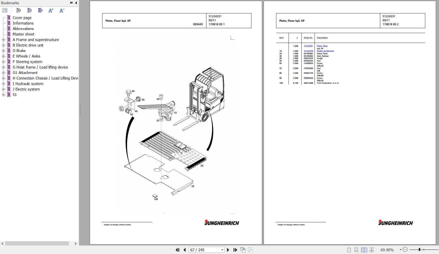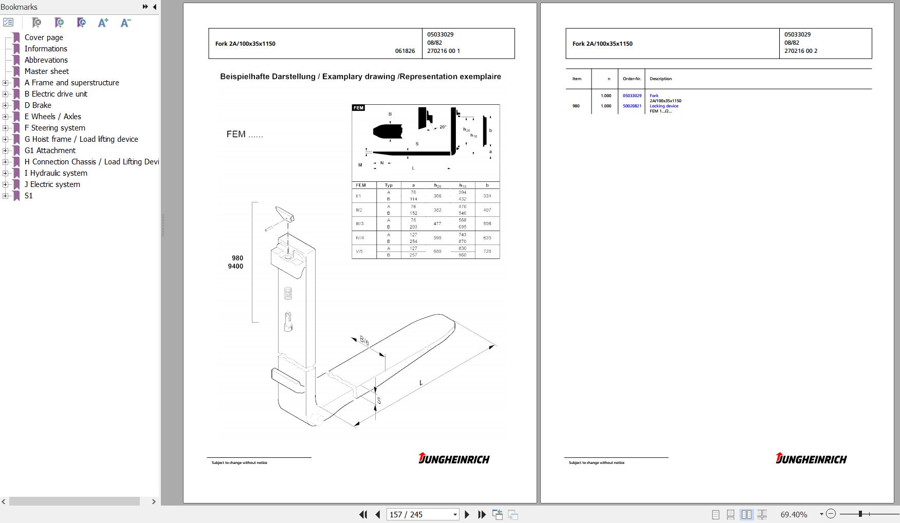 Jungheinrich EFG 115 SP GE115-435DZ Spare Parts Manual FN427034