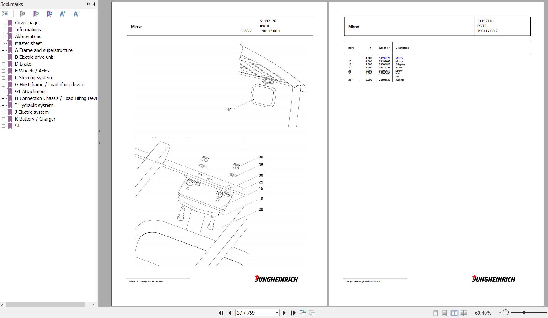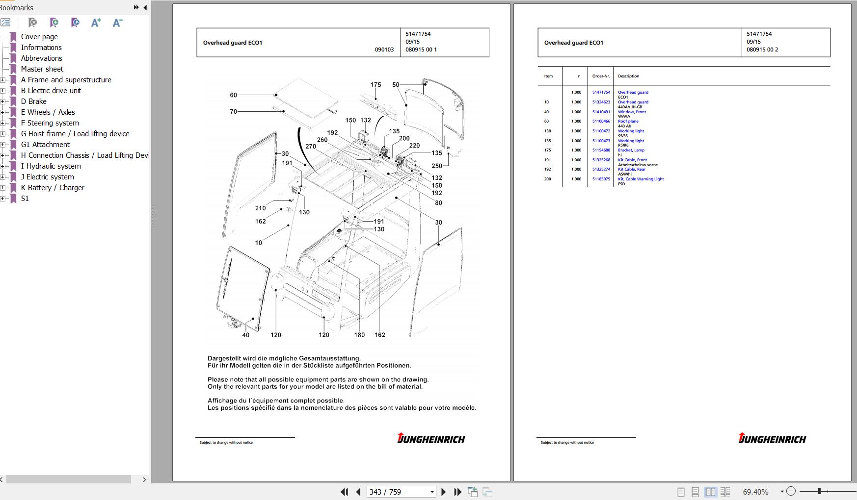 Jungheinrich EFG 213 G+E115-350ZT Spare Parts Manual FN585543