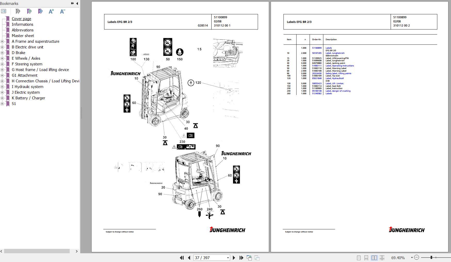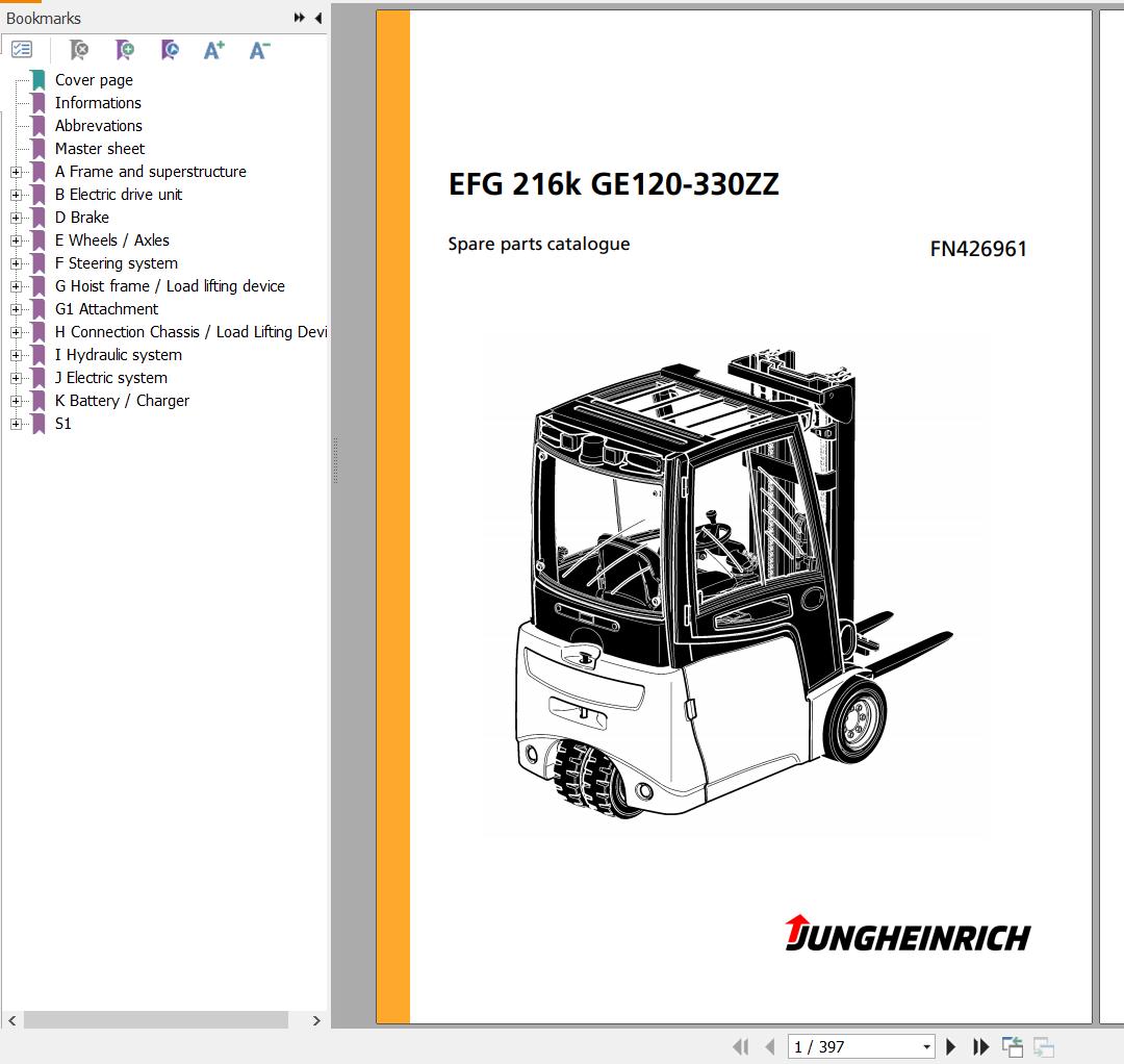 Jungheinrich EFG 216k GE120-330ZZ Spare Parts Manual FN426961