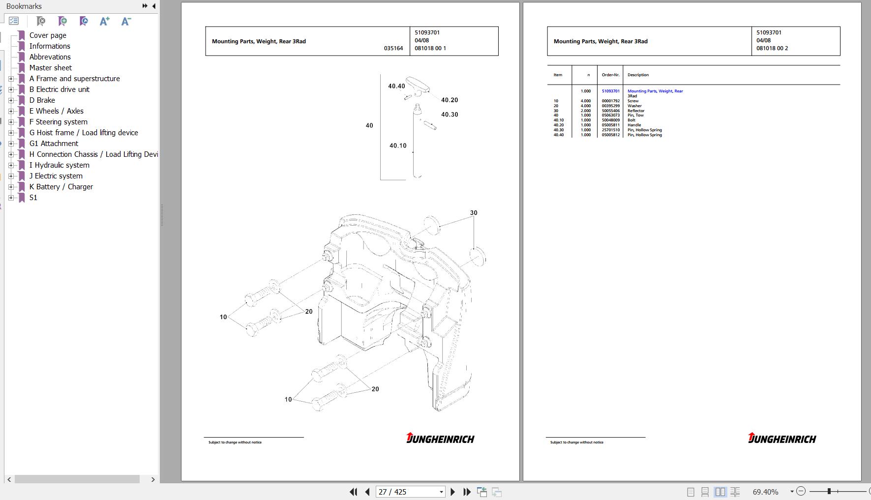 Jungheinrich EFG 220 GE115-500DZ Parts Catalog FN427203
