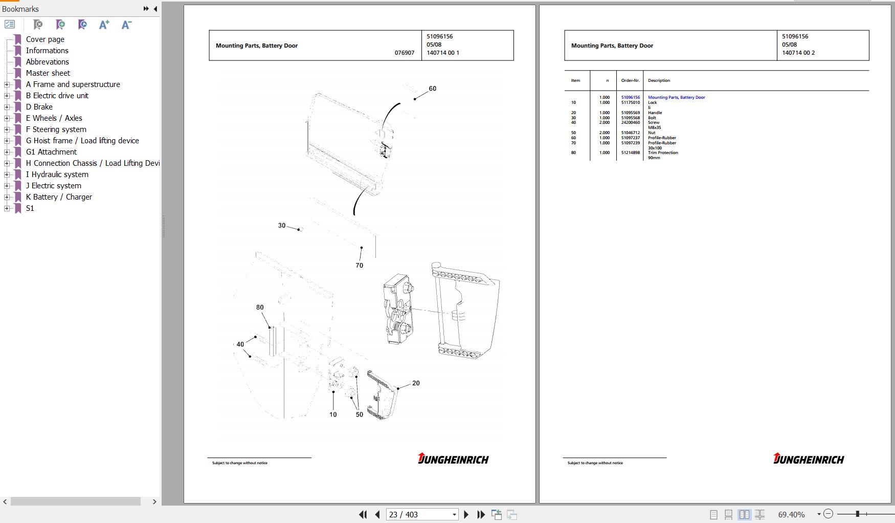 Jungheinrich EFG 316k G115-450DZ Parts Catalog FN427230