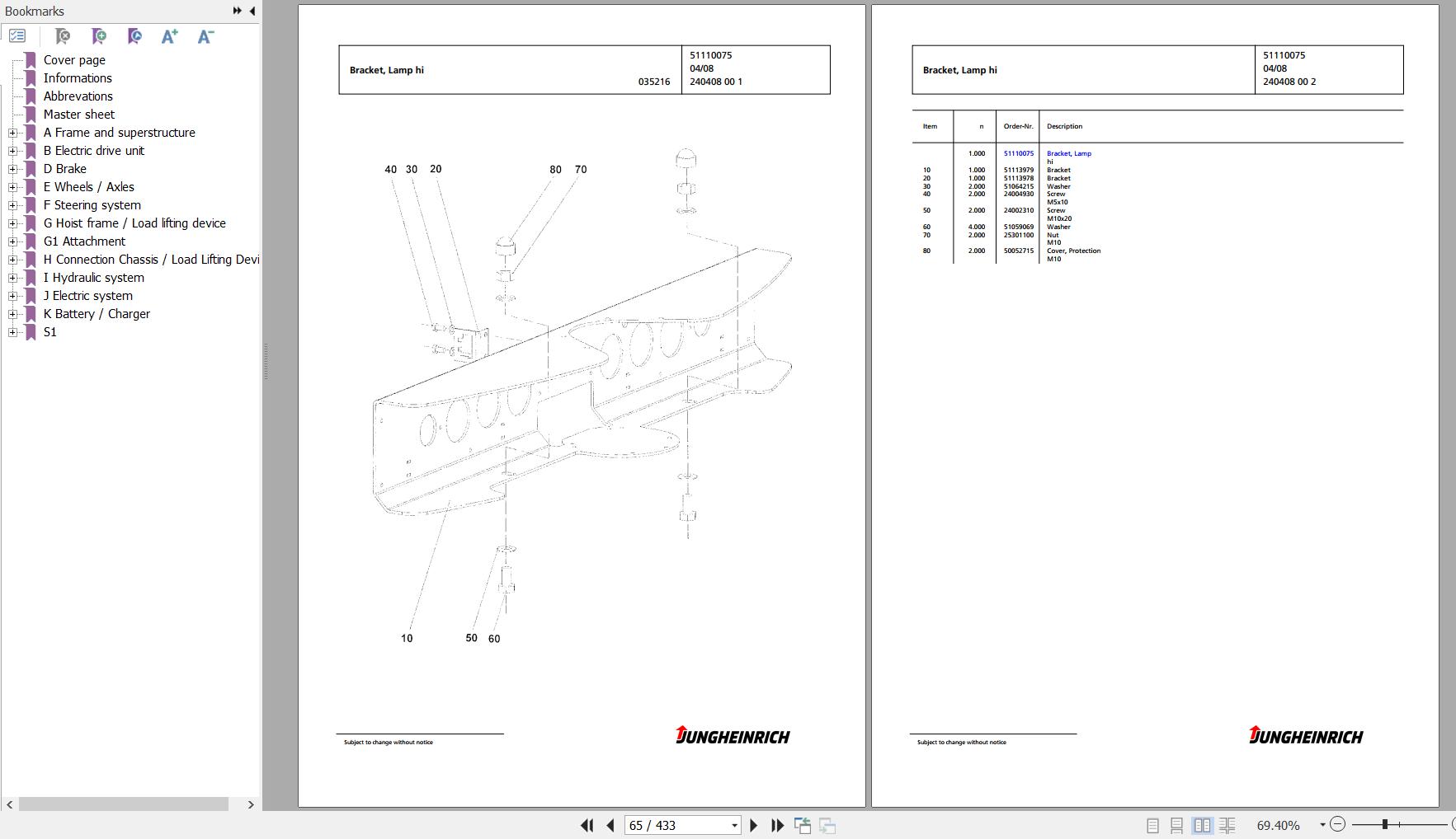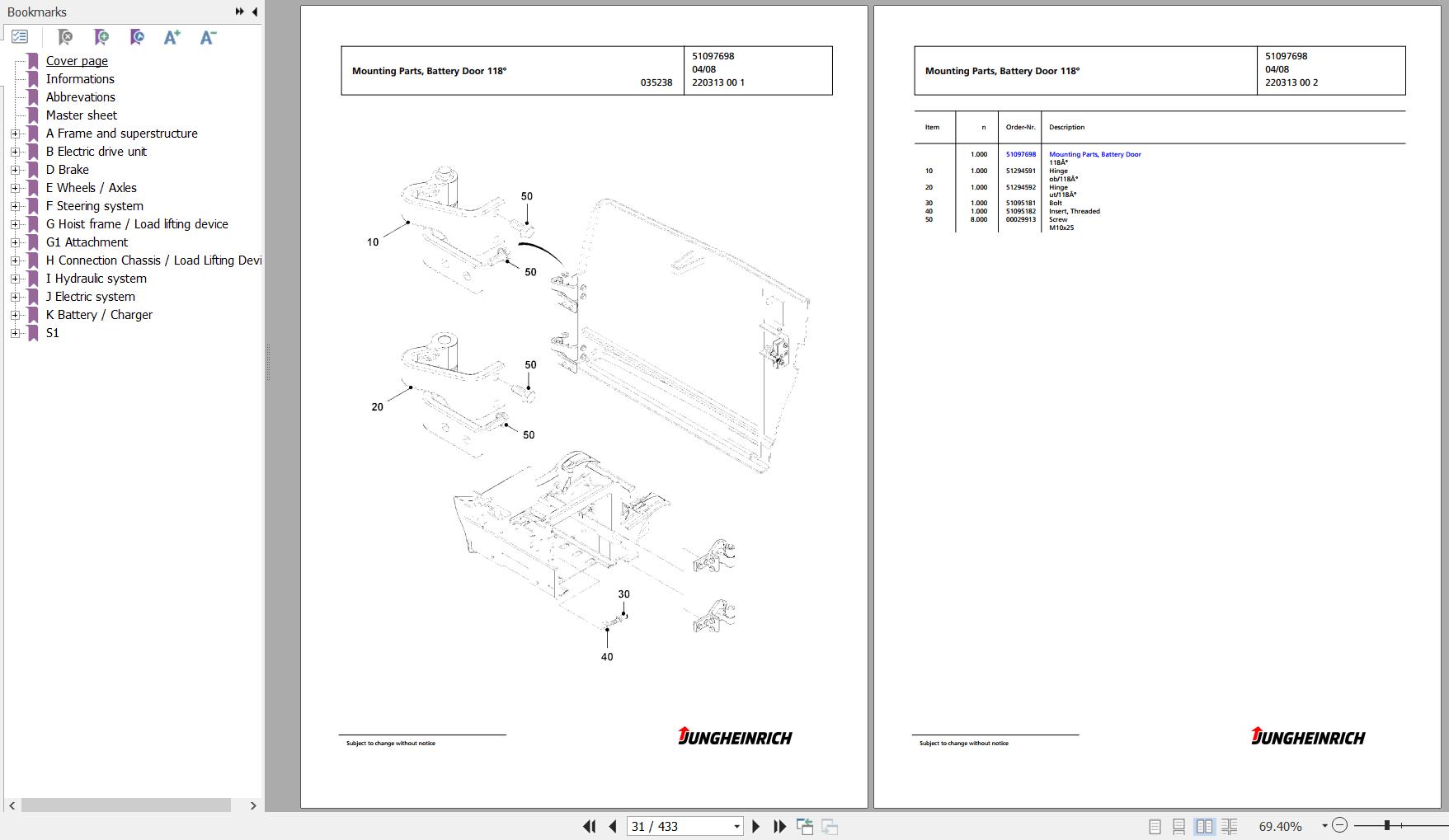 Jungheinrich EFG 316k GE100-400ZT Parts Catalog FN426924