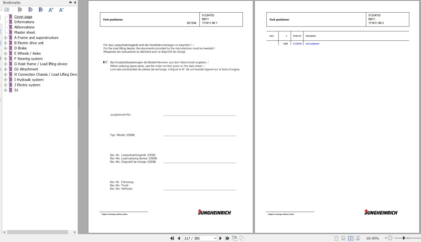 Jungheinrich EFG 430 GE115-440DZ Parts Catalog FN426937