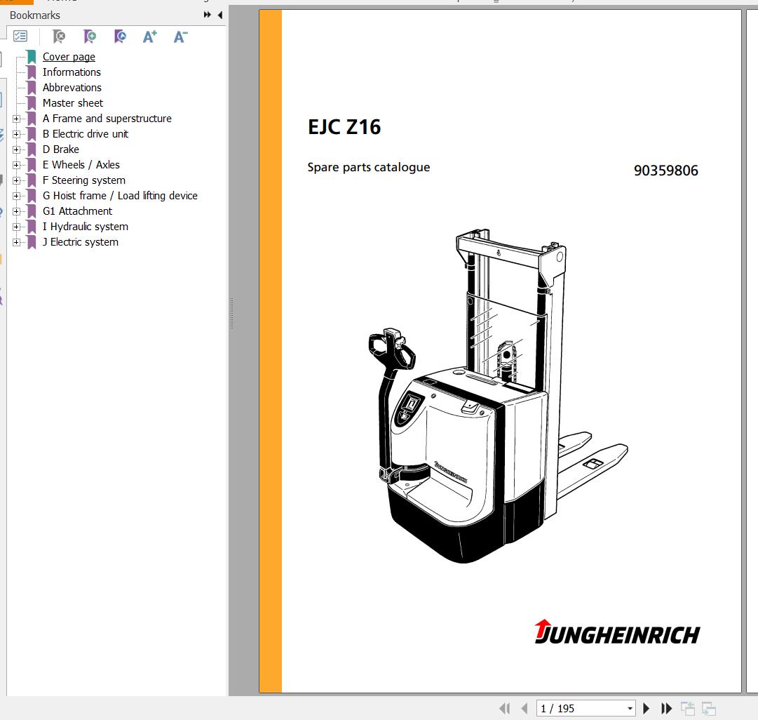 Jungheinrich EJC Z16 Parts Catalog 90359806