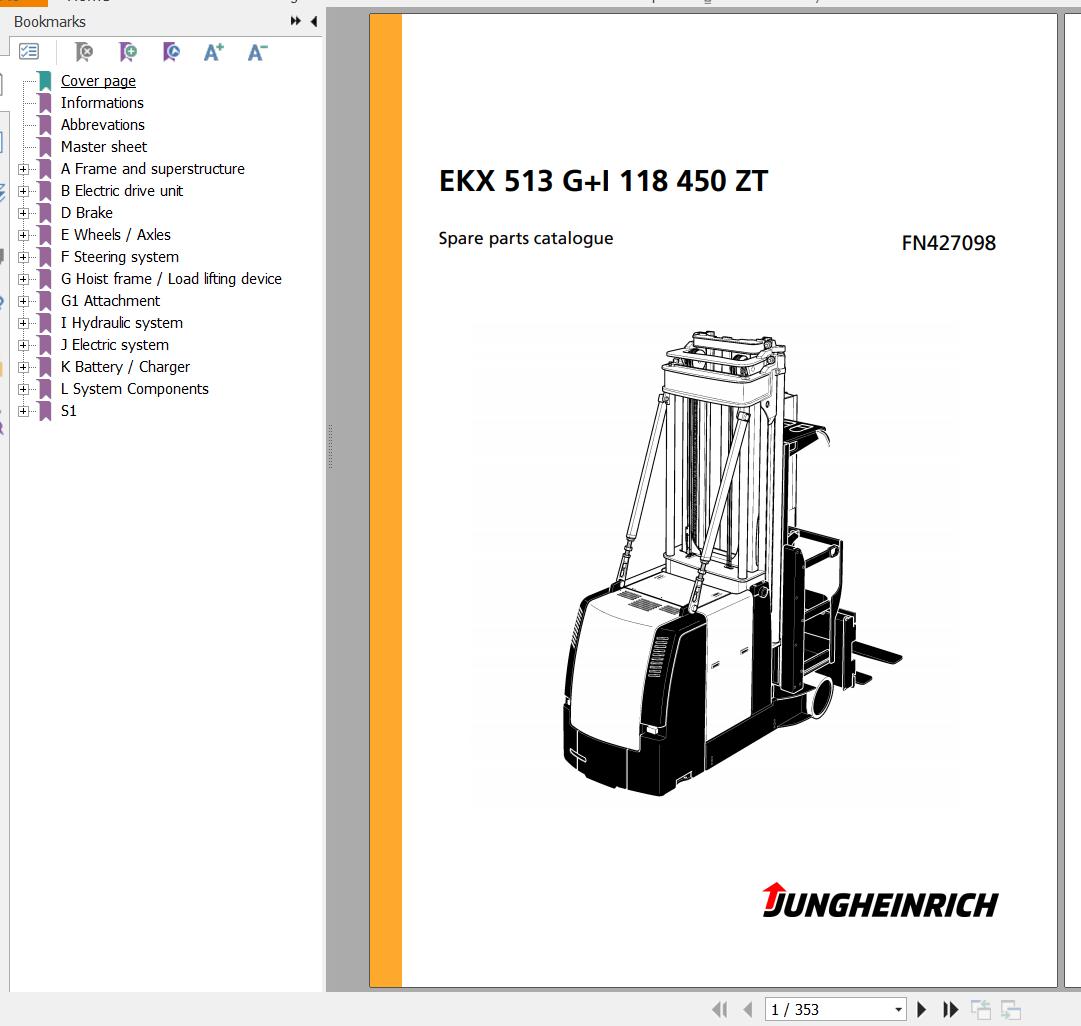 Jungheinrich EKX 513 G+I 118 450 ZT Parts Catalog FN427098