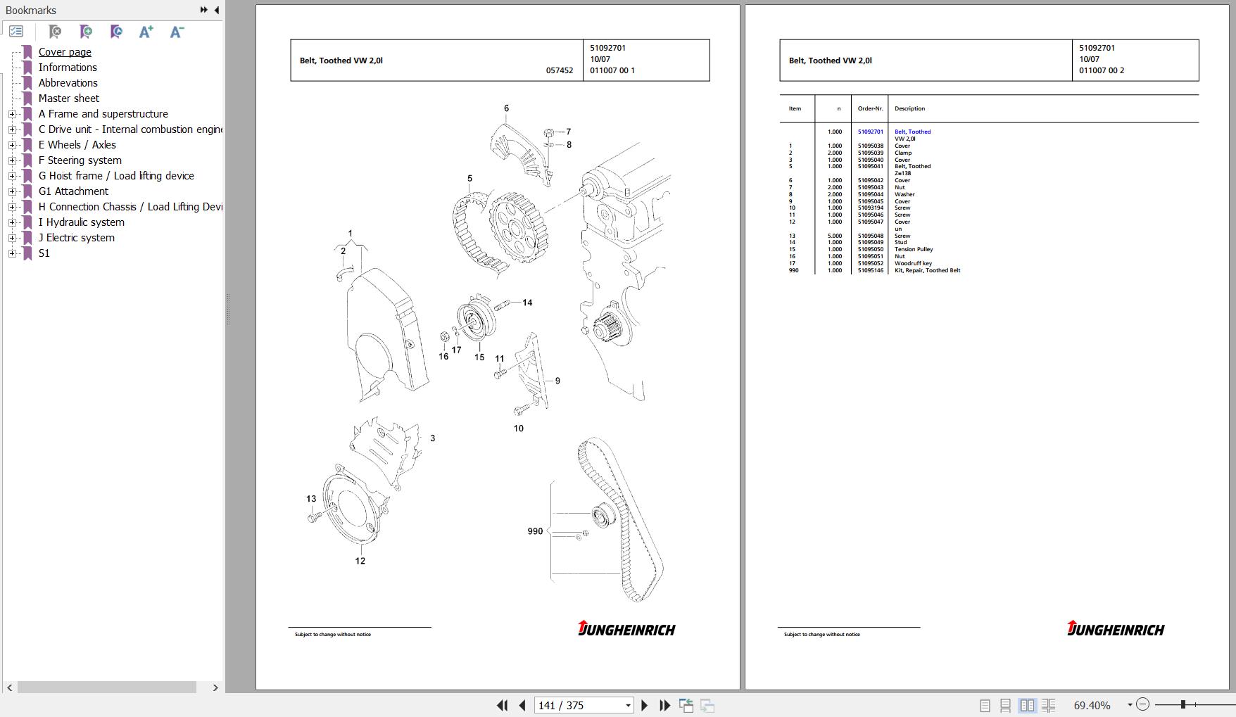 Jungheinrich TFG 425s GE100-440DZ Parts Catalog FN426862