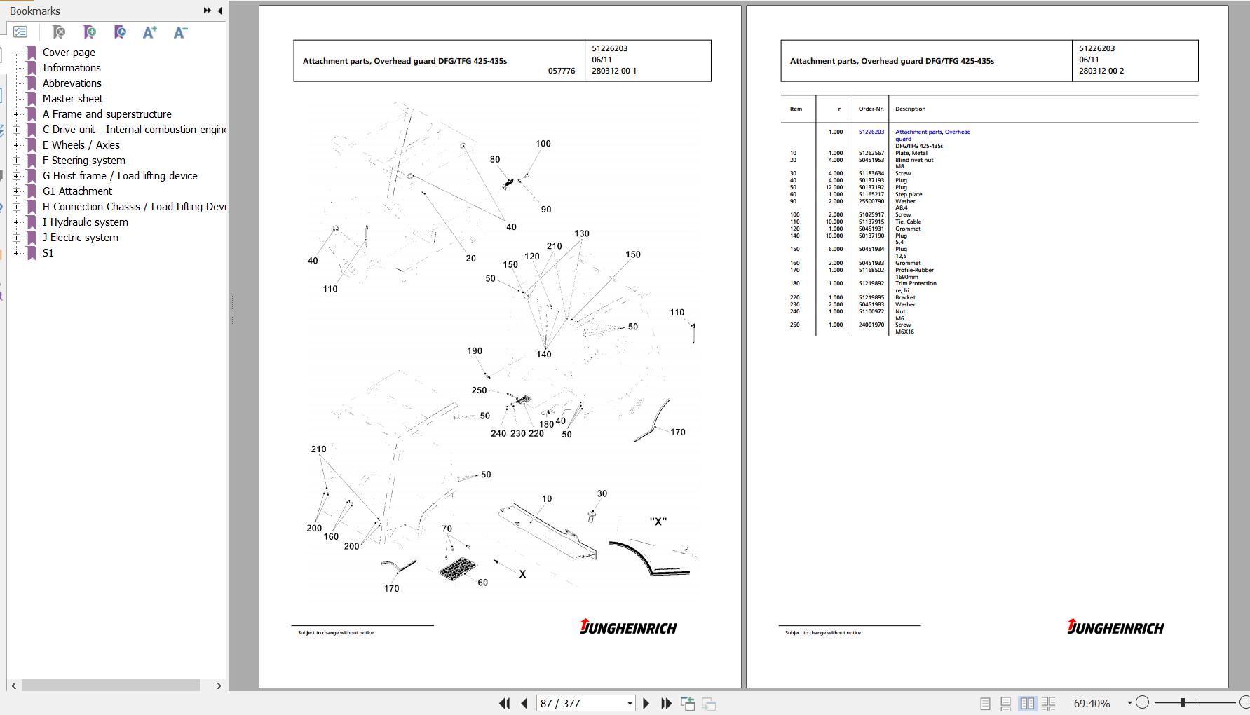 Jungheinrich TFG 425s GE100-500DZ Parts Catalog FN426970