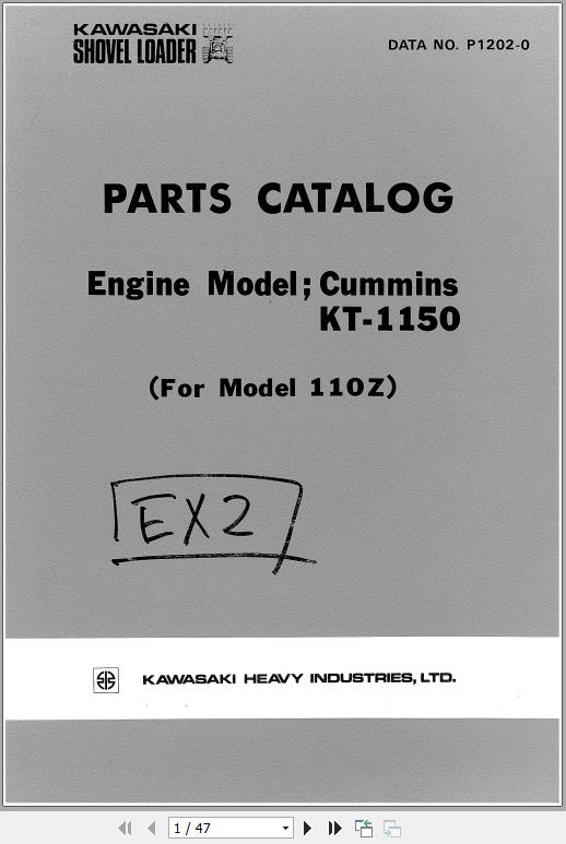 Kawasaki 110Z CUMMINS KT-1150 Engine Parts Catalog P1202-0
