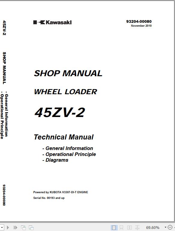 Kawasaki 45ZV-2 Shop Manual General Information Operational Principle & Diagrams 93204-00080 (US) 2010