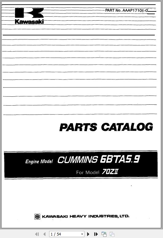 Kawasaki 70ZII CUMMINS 6BTA5.9 Engine Parts Catalog AAAP17106-0 EN JP 54 Pages 1988