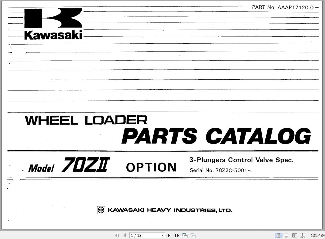 Kawasaki 70ZII 3-Plungers Control Valve Parts Catalog AAAP17120-0 EN JP 13 Pages
