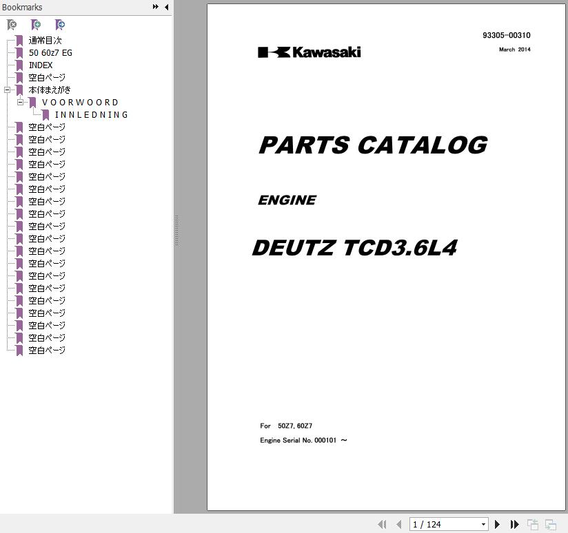 Kawasaki 50Z7 60Z7 DEUTZ TCD3.6L4 Engine Parts Catalog 93305-00310 EN JP 2014