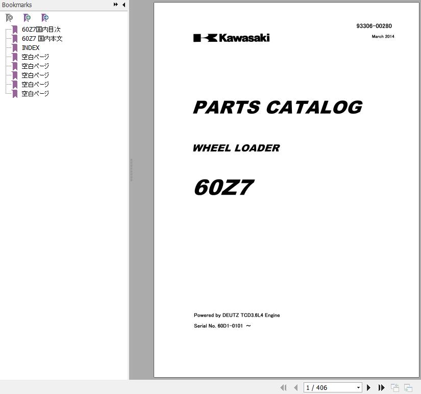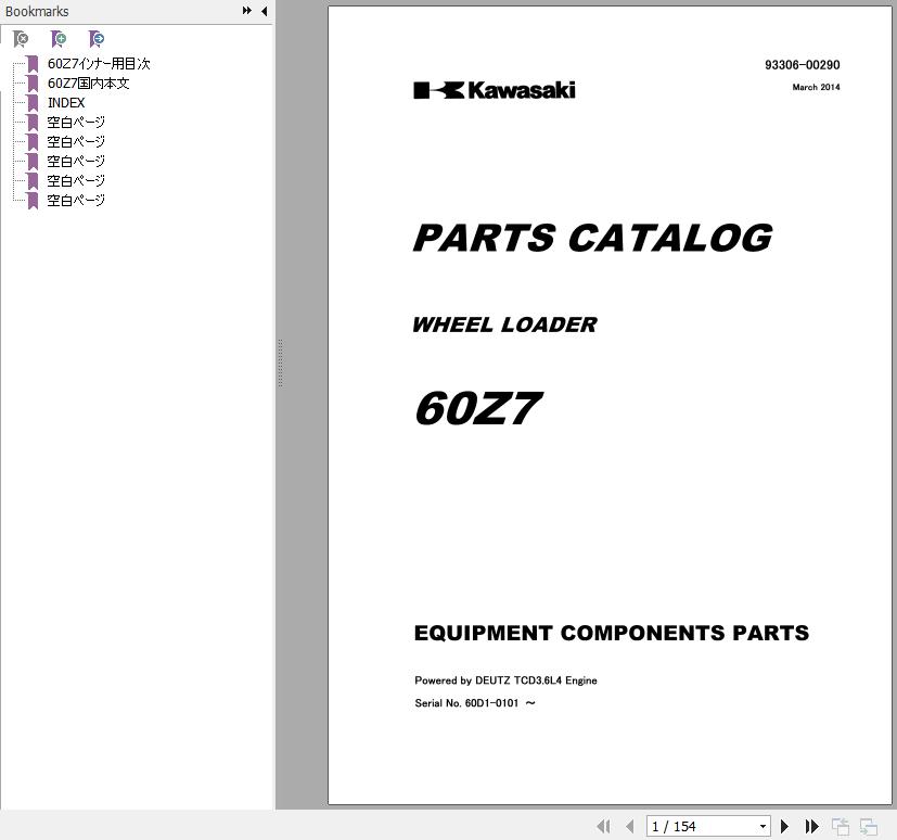 The Bookmarks of Kawasaki 60Z7 Wheel Loader Parts Catalog: