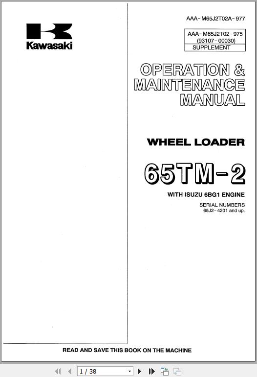 Kawasaki 65TM-2 Operation & Maintenance Manual AAA- M65J2T02A-977 (EXP) 38 Pages