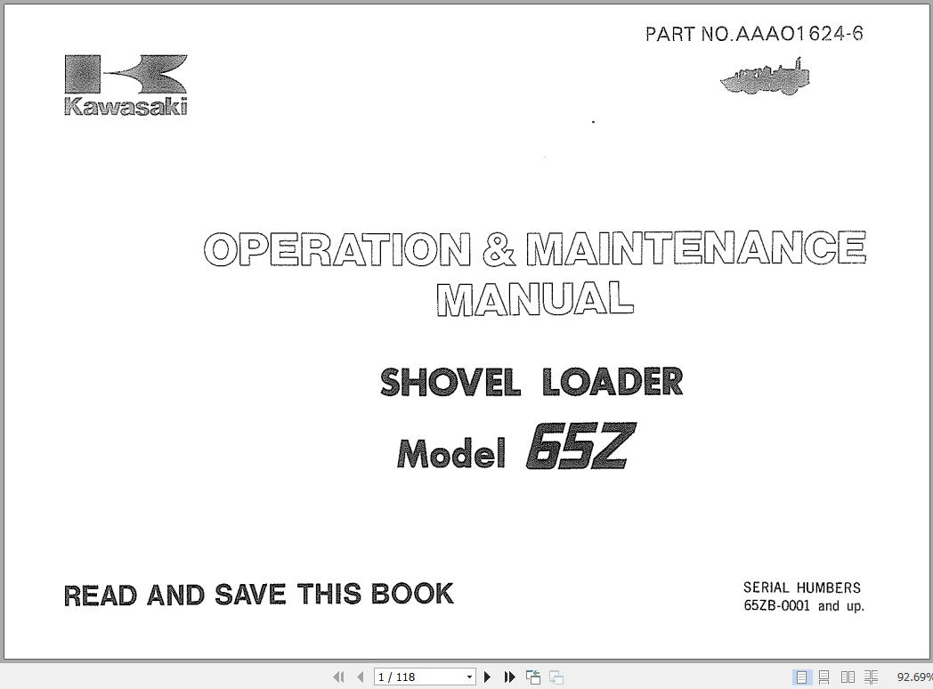 Kawasaki 65Z Shovel Loader Operation & Maintenance Manual AAA01624-6