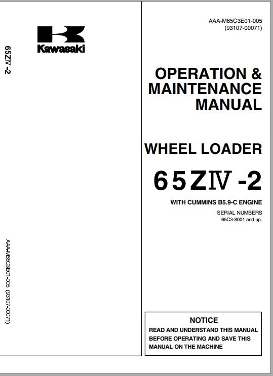 Kawasaki 65ZIV-2 Operation & Maintenance Manual AAA-M65C3E01-005 (93107-00071) (OCE)