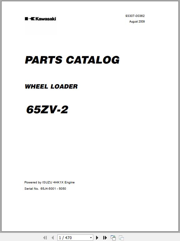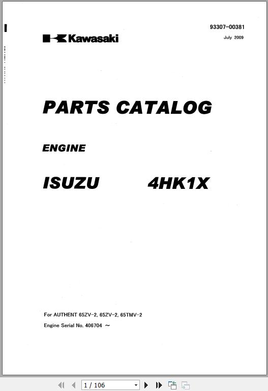 Kawasaki 65ZV-2 65TMV-2 ISUZU 4HK1X Engine Parts Catalog 93307-00381 EN JP 106 Pages 2009