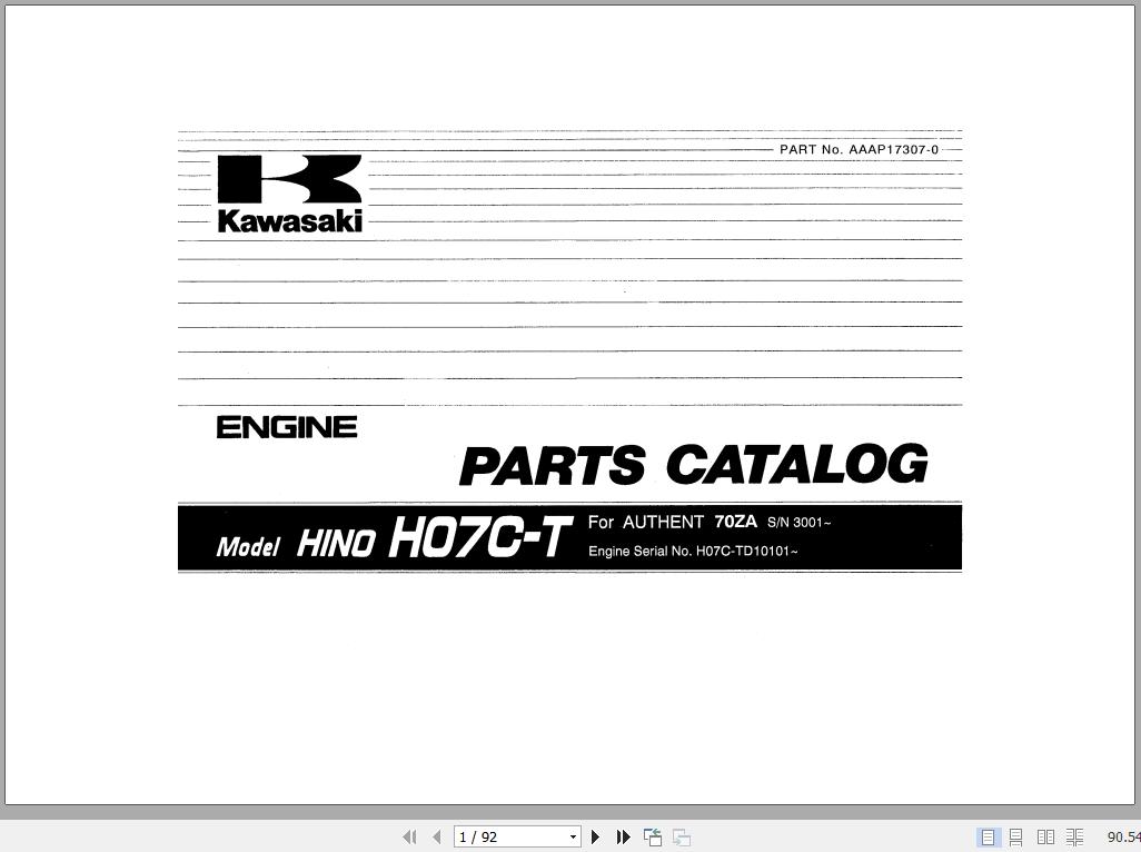 Kawasaki 70ZA HINO HO7C-T Engine Parts Catalog AAAP17307-0 EN JP 92 Pages