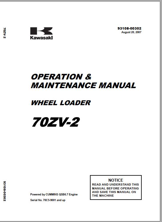 Kawasaki 70ZV-2 70TMV-2 Operation & Maintenance Manual