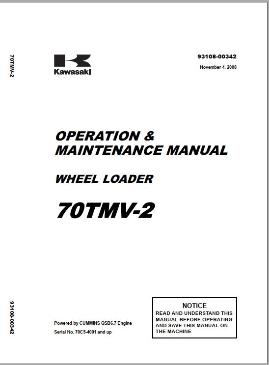 Kawasaki 70TMV-2 Operation & Maintenance Manual 93108-00342 (US) 2008