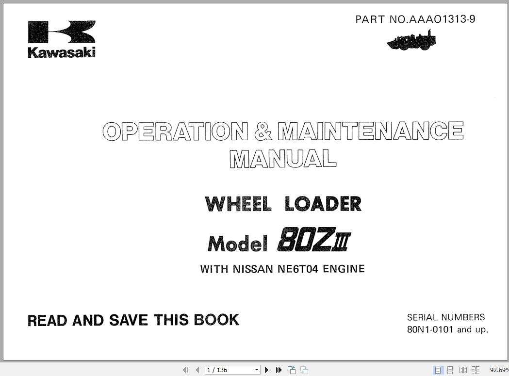 Kawasaki 80ZIII Operation & Maintenance Manual AAAO1313-9 (EXP) 136 Pages