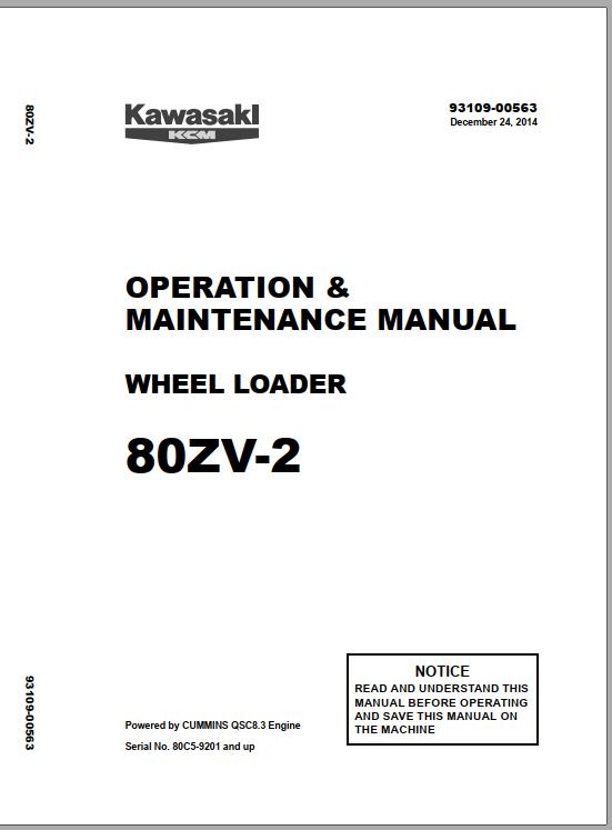 Kawasaki 80ZV-2 Operation & Maintenance Manual 93109-00563 (OCE) 2014