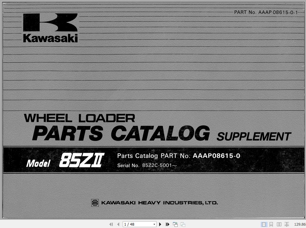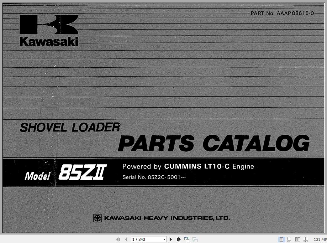 Kawasaki 85ZII Shovel Loader Chassis Parts Catalog AAAP08615-0 EN JP 343 Pages 1988