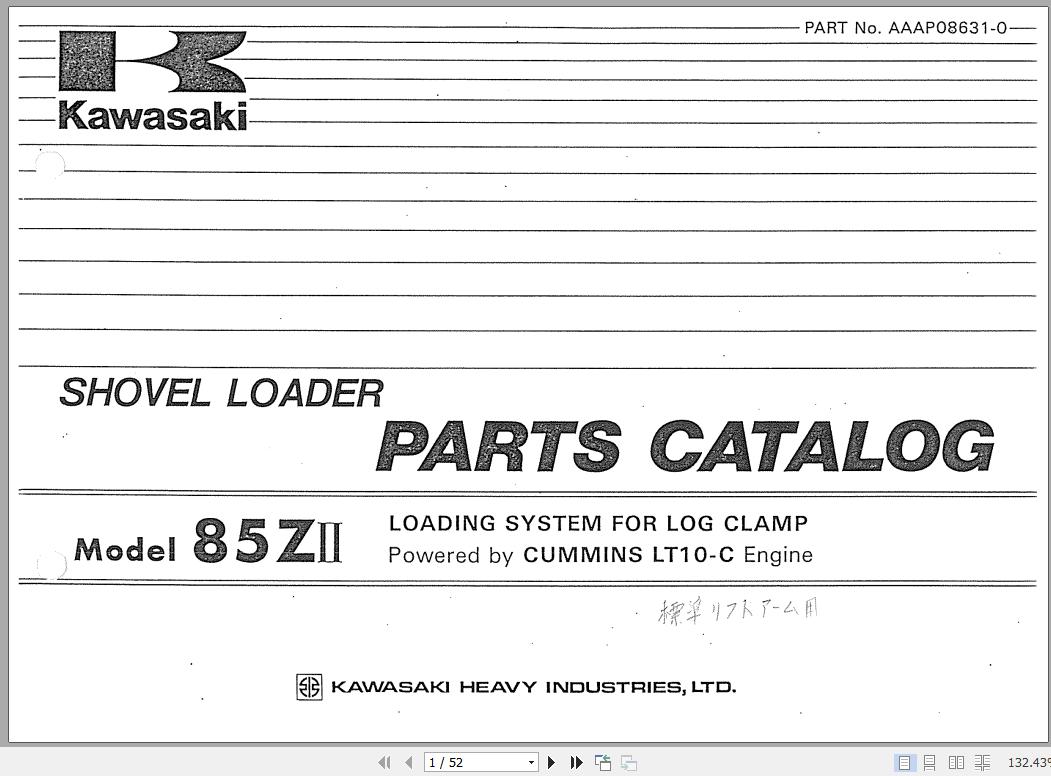 The Bookmarks of Kawasaki 85ZII Wheel Loader Parts Catalog: