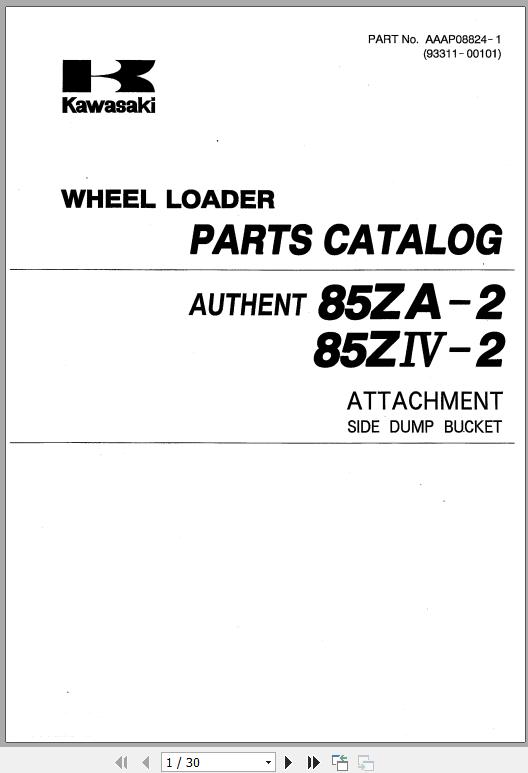 Kawasaki 85ZIV-2 85ZA-2 Side Dump Bucket Parts Catalog AAAP08824-1 (93311-00101) EN JP 30 Pages