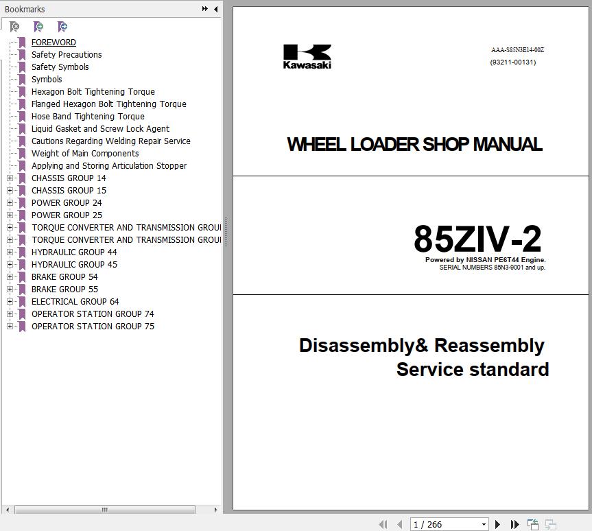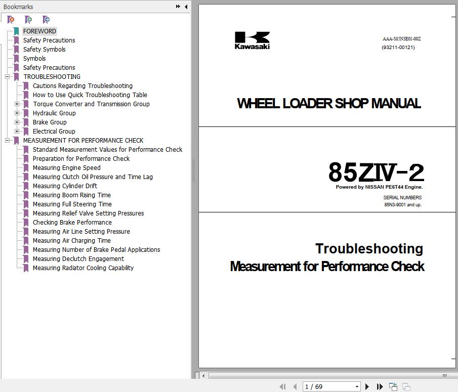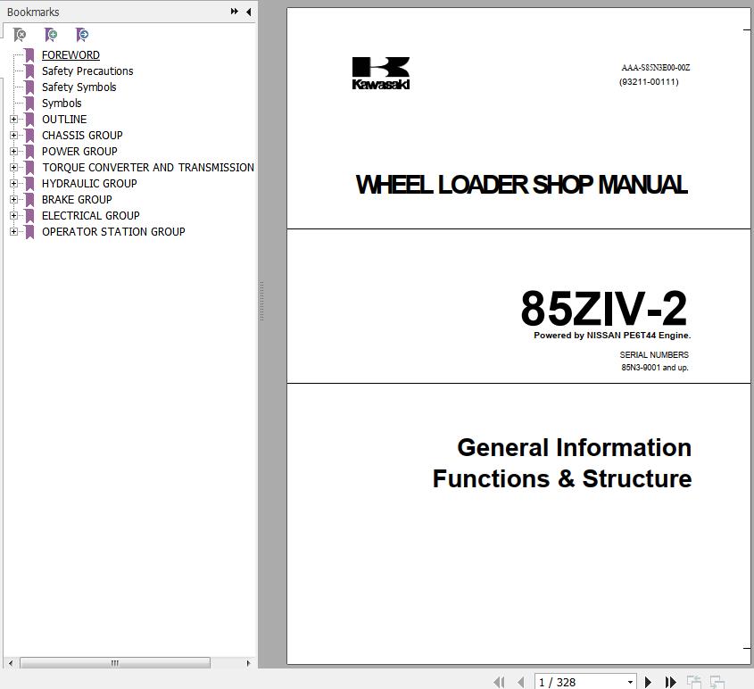 The Bookmarks of Kawasaki 85ZIV-2 Wheel Loader Shop Manual: