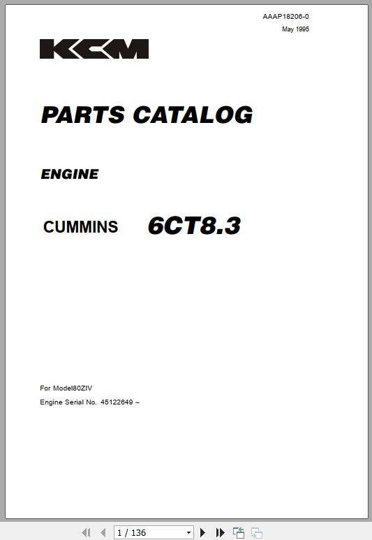 Kawasaki 85ZIV CUMMINS 6CT8.3 Engine Parts Catalog AAAP18206-0 EN JP 136 Pages 1995