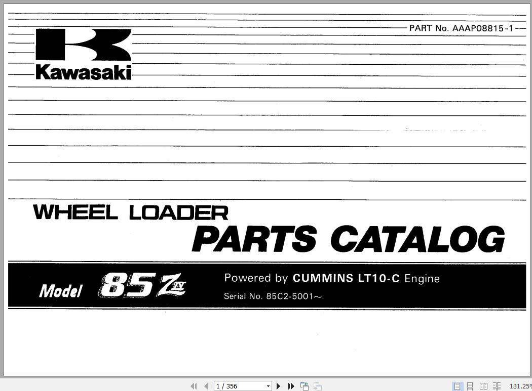 The Bookmarks of Kawasaki 85ZIV Wheel Loader Parts Catalog: