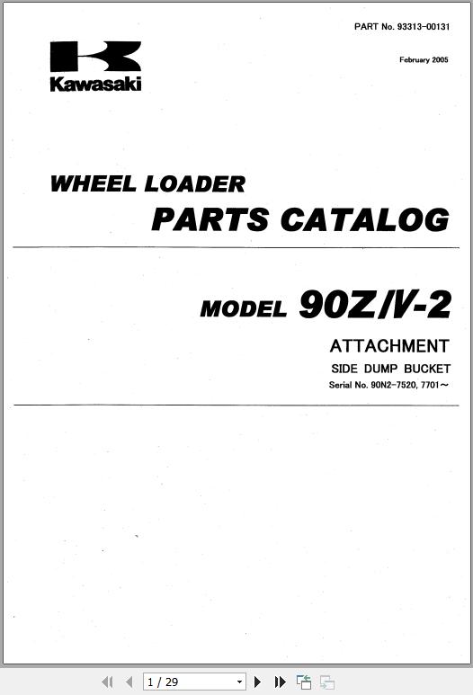 Kawasaki 90ZA-2 90ZIV 90IV-2 Side Dump Bucket Parts Catalog 93313-00131 EN JP 2005