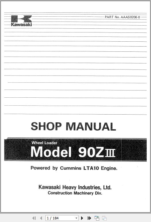 Kawasaki 90ZIII Shop Manual Function And Construction Inspection And Adjustment AAAS0206-0 184 Pages