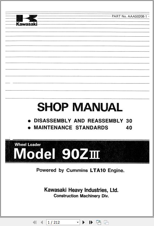The Bookmarks of Kawasaki 90ZIII Wheel Loader Shop Manual: