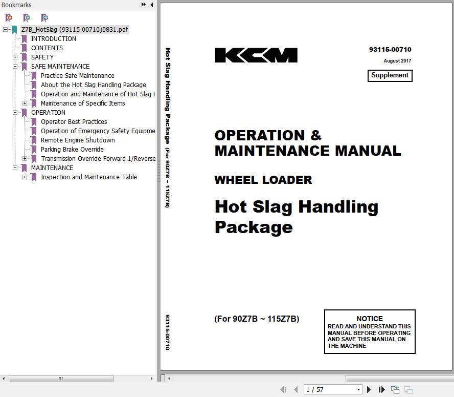 The Bookmarks of Kawasaki 95Z7 90Z7B-115Z7B Wheel Loader Operation & Maintenance Manual: