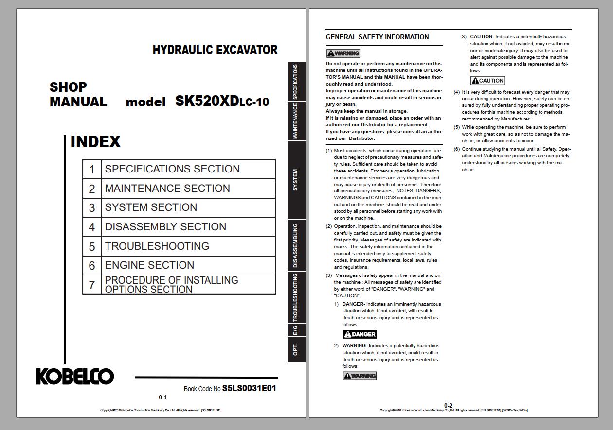 Kobelco S5LS0031E01 SK520XDLC-10 INDIA Shop manual PDF