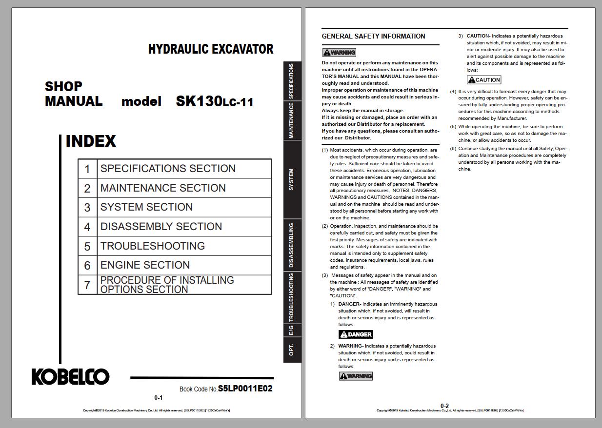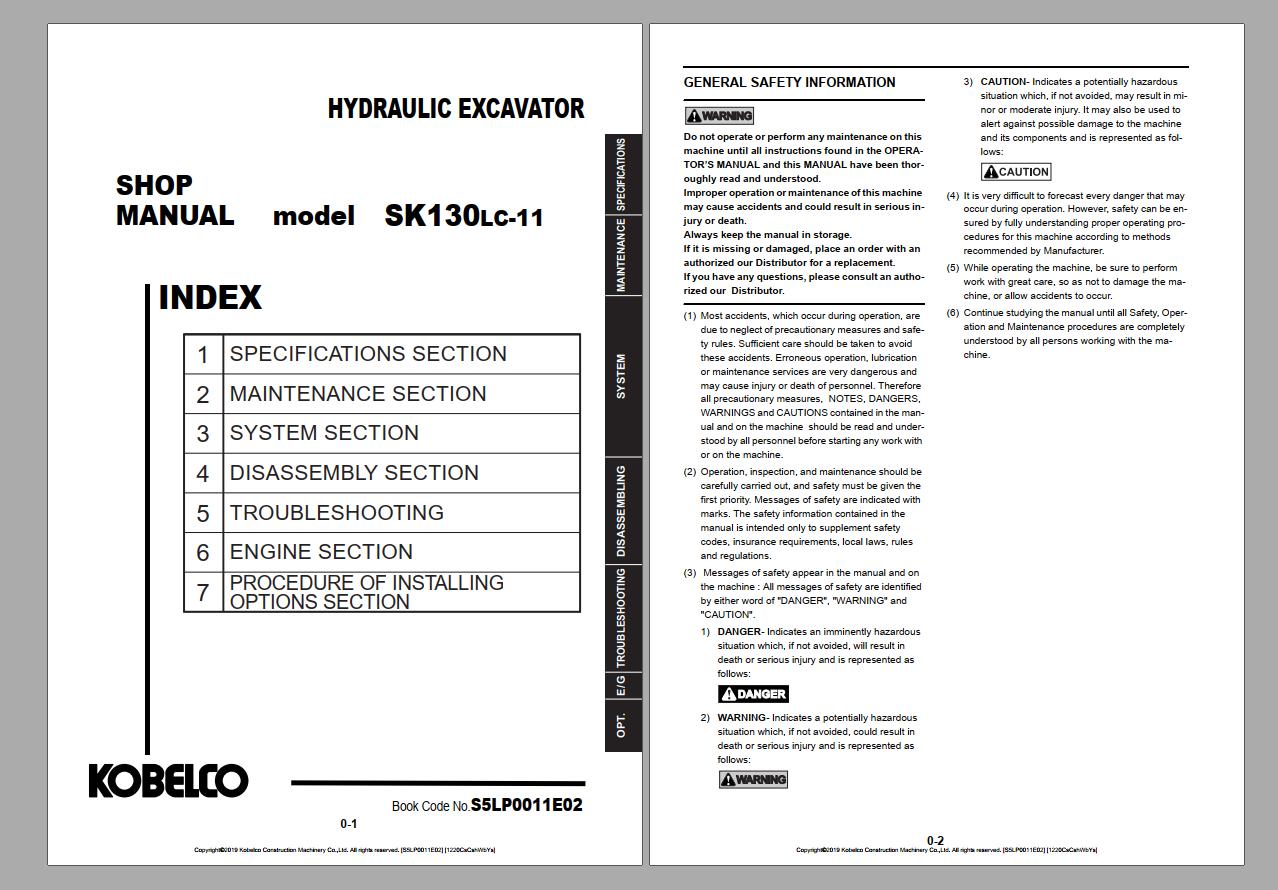 Kobelco S5LP0011E02 SK130LC-11 (EU 2019) Shop Manual PDF
