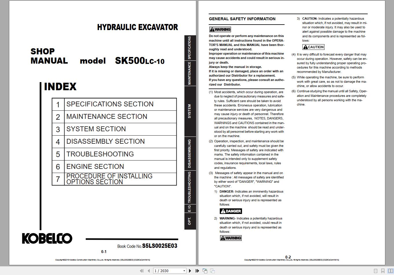 Kobelco S5LS0025E03 SK500LC-10 (NA 2019) Shop Manual PDF