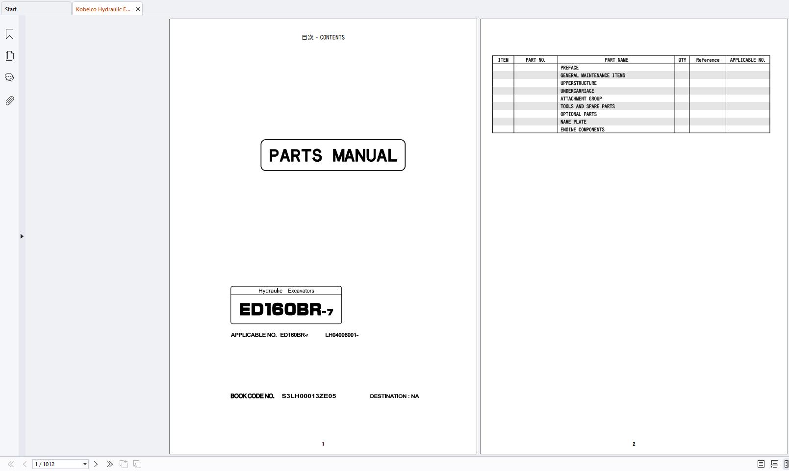 Kobelco ED160BR-7 2025 Parts Manual S3LH00013ZE