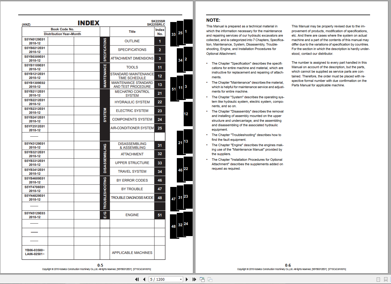 The Bookmarks of Kobelco SK225SRLC-2 Shop Manual: