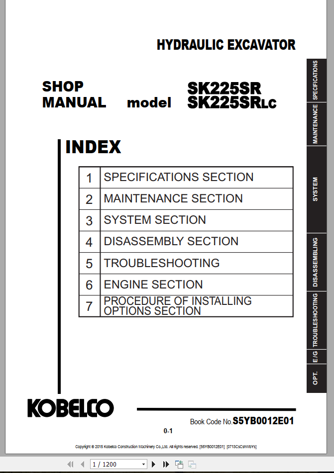 Kobelco SK225SRLC-2 Shop Manual S5YB0012E01